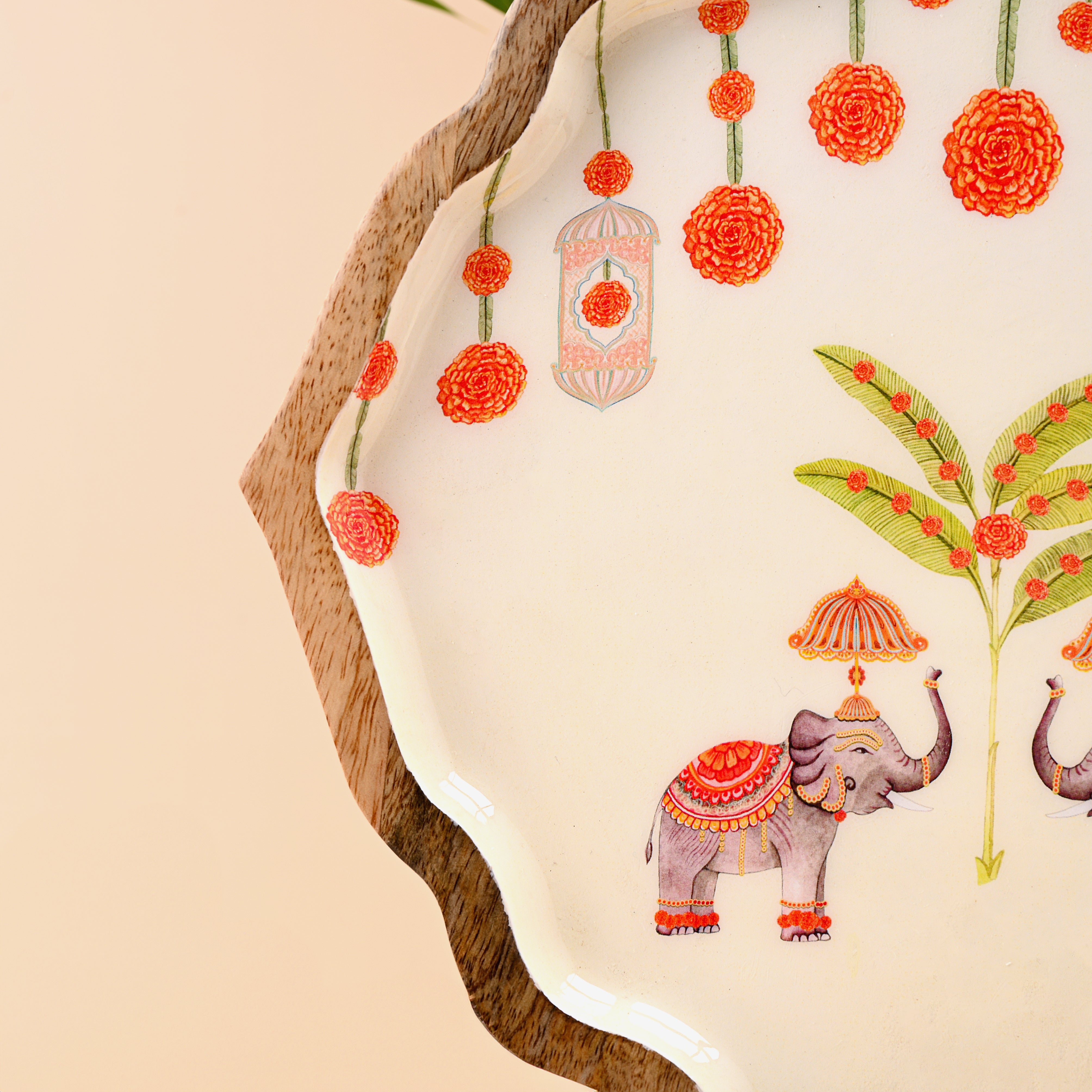 Dine with timeless sophistication using the Ivory Elegance Plate—a refined masterpiece that brings classic beauty to your dining experience. Expertly handcrafted from sustainably sourced mango wood, this elegant plate showcases a pristine ivory-cream finish that evokes the purity and grace of fine porcelain. The generous size provides ample space for presenting culinary creations while maintaining the refined proportions that define elegant dinnerware. The exterior features an exquisite enamel finish adorned with festive Elle motifs—delicate patterns, sophisticated designs, and artistic details that celebrate both tradition and timeless elegance. Golden highlights and meticulous craftsmanship elevate this plate from simple dinnerware to a treasured piece that brings ivory elegance and sophisticated charm to your dining table.