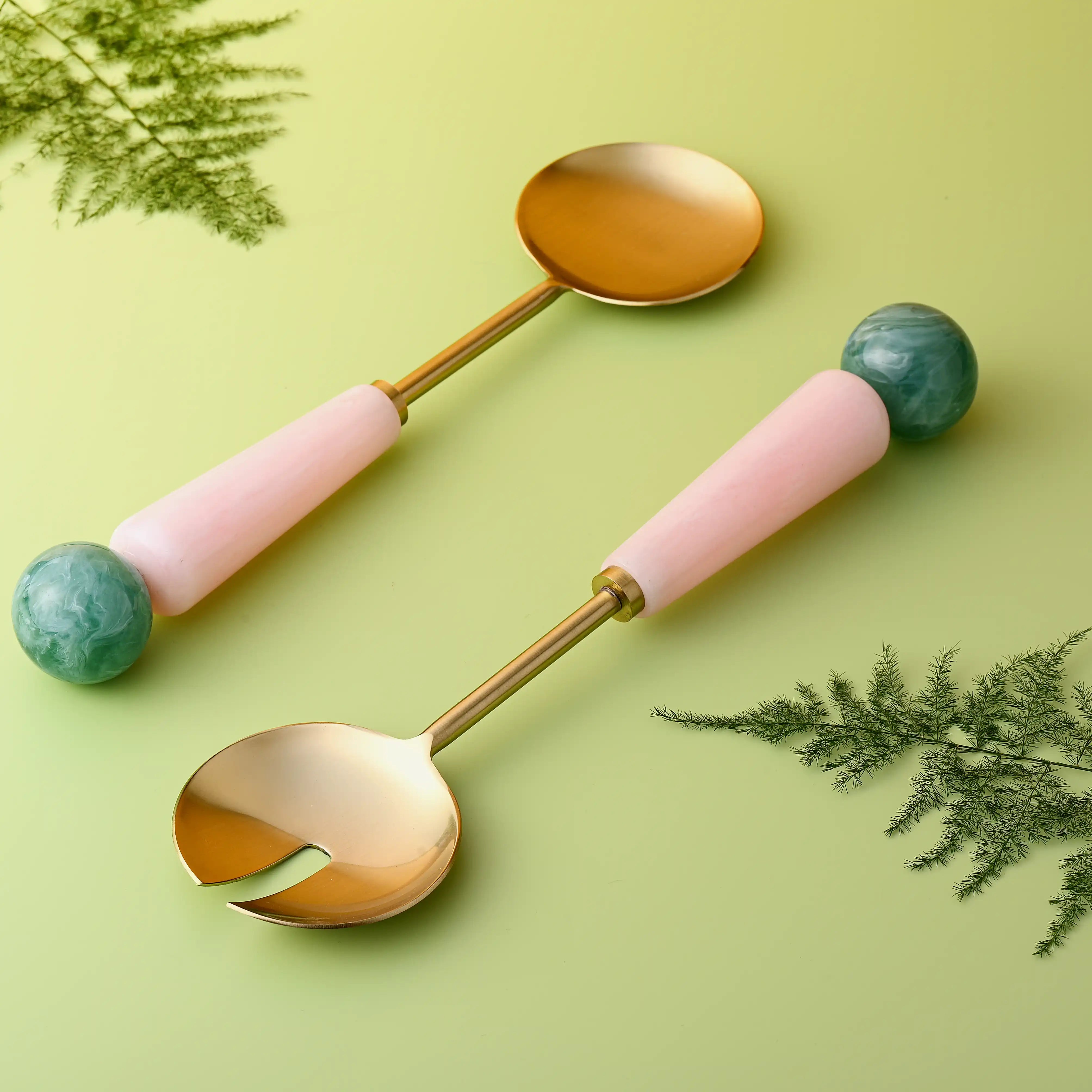 Bring a touch of romance and warmth to your dining experience with this beautiful pink resin Salad Serving Set that makes every meal feel special.