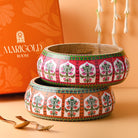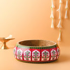 Bring the passion and grandeur of Mughal courts to your table with the Ruby Courtyard Bowl—a magnificent piece that radiates the deep richness of precious gemstones. Expertly handcrafted from sustainably sourced mango wood, this intimate bowl features a lustrous ruby-red finish that captures the intensity and luxury of royal treasures. The perfectly sized silhouette makes it ideal for serving delicate appetizers or creating stunning decorative displays that command attention. The exterior showcases an exquisite enamel finish adorned with authentic Mughal motifs—intricate paisley patterns, ornate florals, and geometric designs that reflect the sophisticated artistry of imperial craftsmen. Golden accents and meticulous detailing transform this bowl into a precious jewel that elevates any dining experience with regal sophistication.
